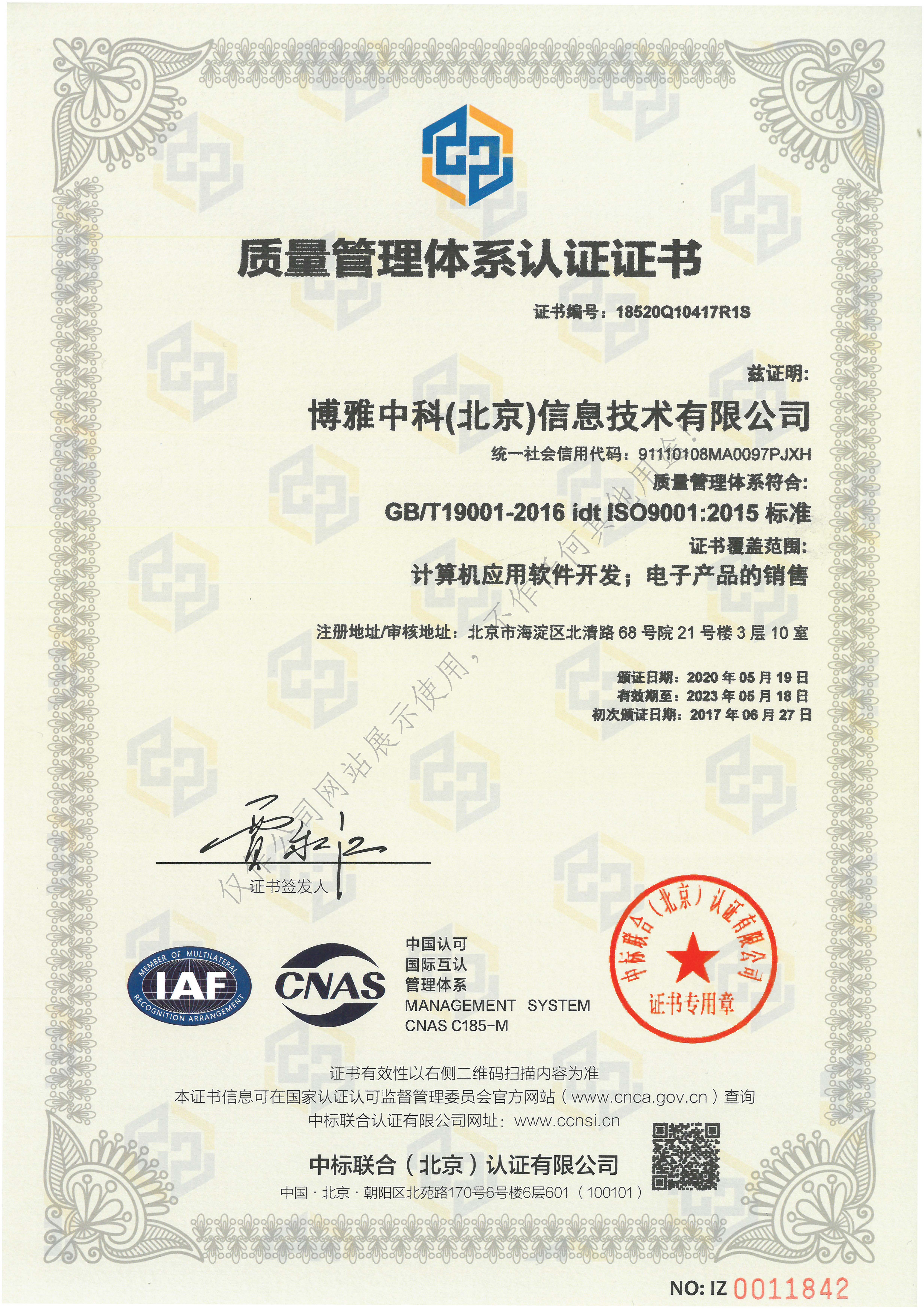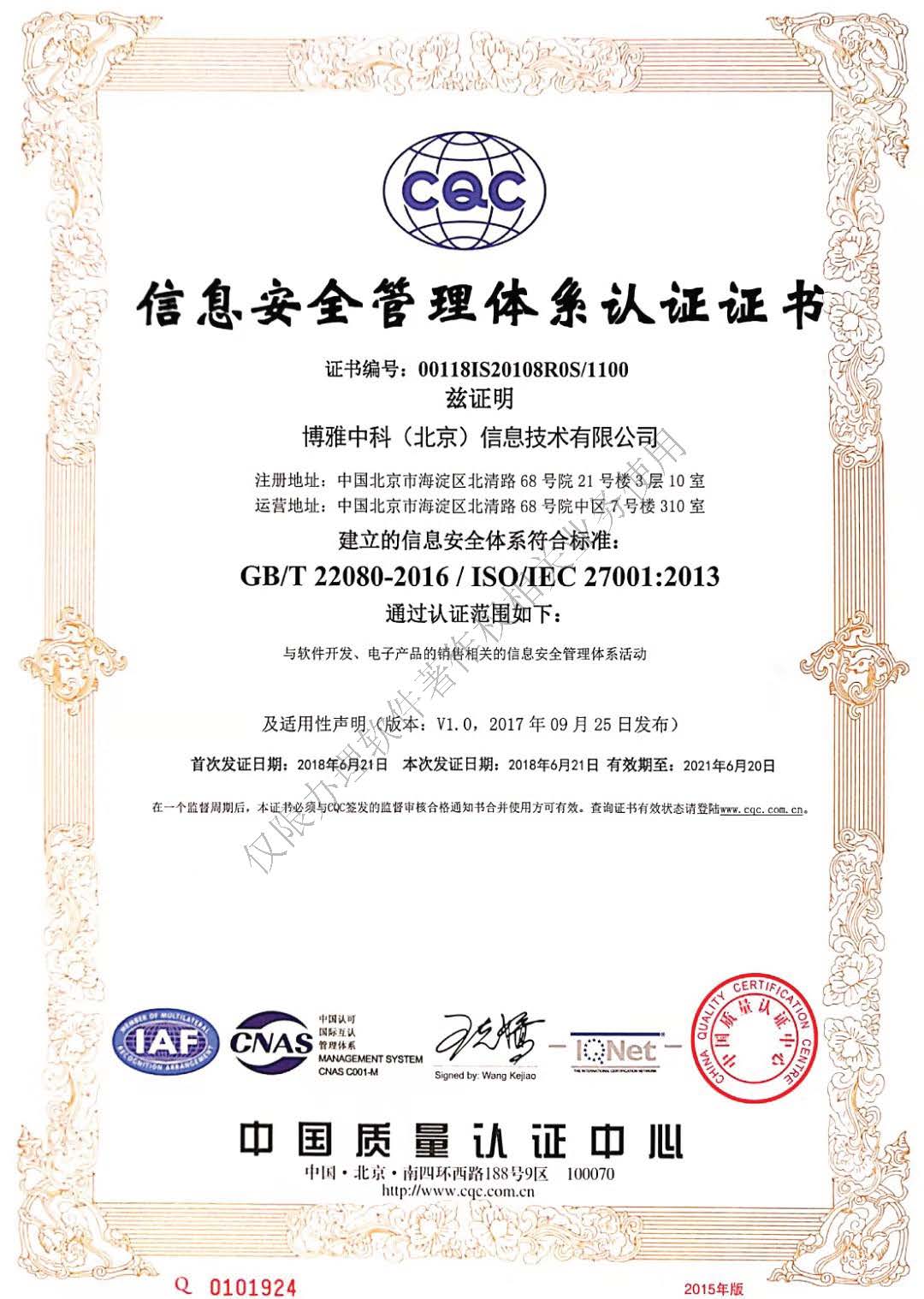 博雅中科(北京)信息技术有限公司成立于2016年,公司位于用友软件园, 核心团队多年从事商用密码算法、商用密码协议研究以及网络可信身份认证技术研究,目前已拥有十多项商用密码产品的技术和知识产权,研制开发了电子签章系统、签名认证服务系统、云签名平台等产品和系统。公司依托北京大学网络与信息安全重点实验室,紧跟国际信息安 全先进技术,不断实现密码技术创新应用,为重点行业提供信息安全解决方案。
